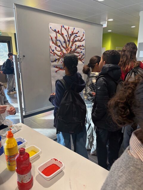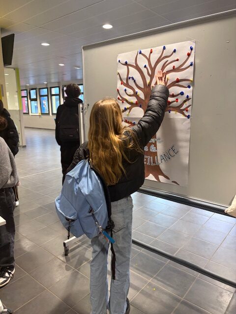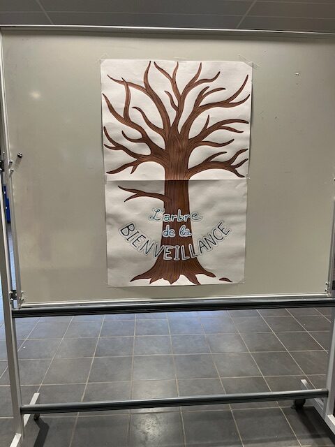 – arbre de la bienveillance lundi matin où chaque élève laisse son empreinte,